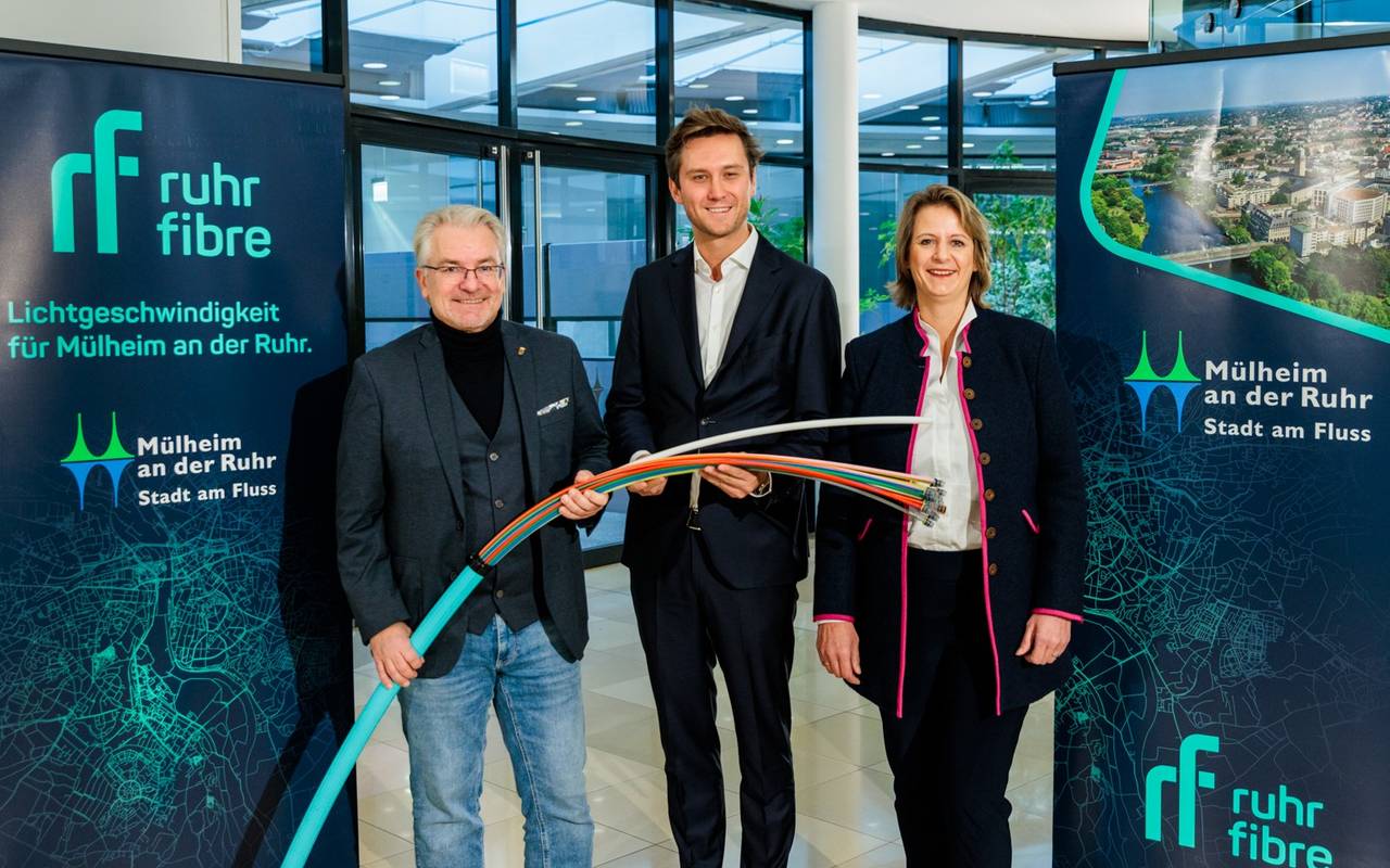 Das Telekommunikationsunternehmen Ruhrfibre ist neuer Kooperationspartner der Stadt Mülheim beim Glasfaserausbau. Oberbürgermeister Buchholz und die Geschäftsführung des Unternehmens haben dazu jetzt eine gemeinsame Absichtserklärung unterzeichnet. Geplant ist bis 2027 rund 70.000 Haushalte in Mülheim ans schnelle Internet anzuschließen.