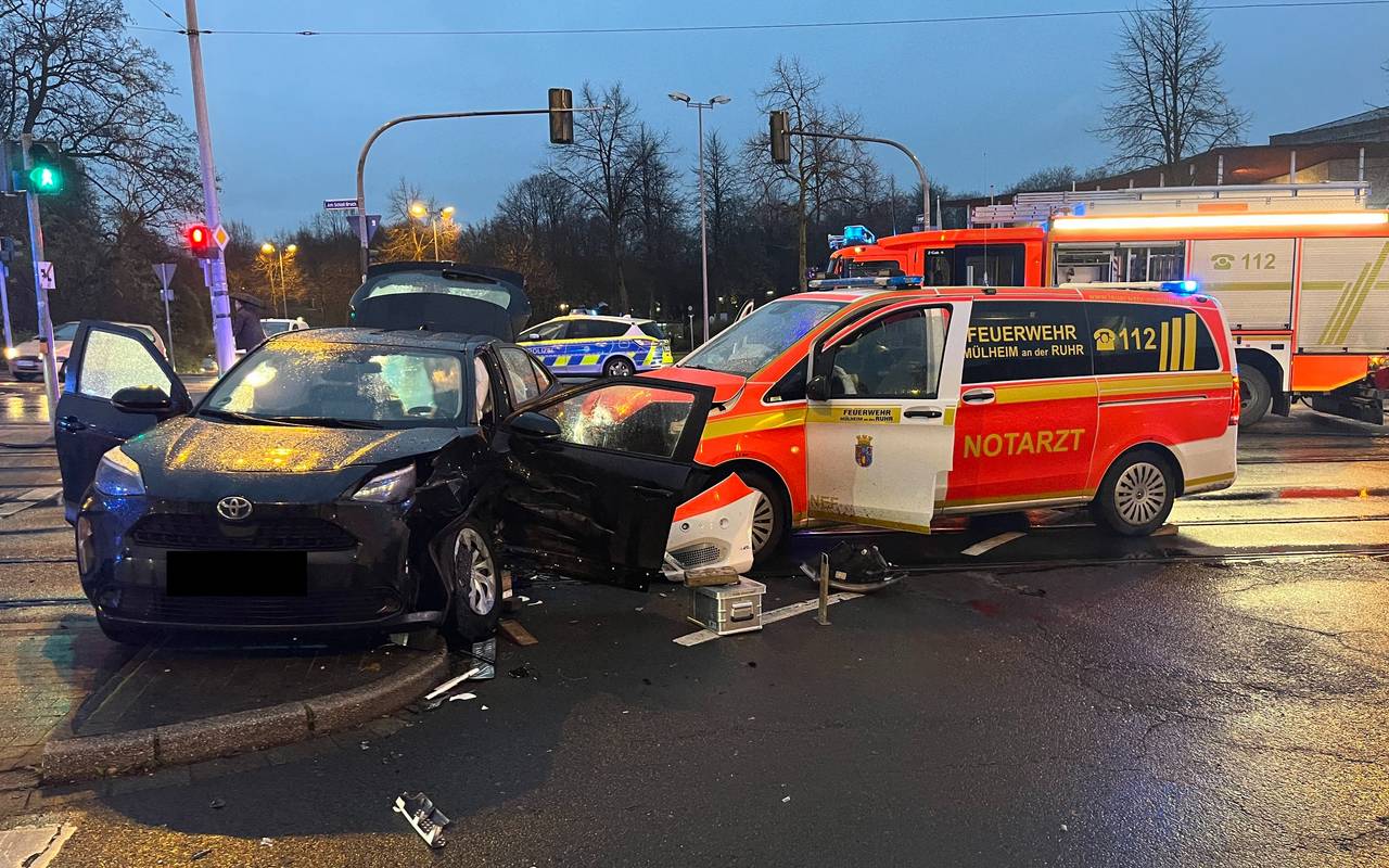 Der Unfall soll gegen 16 Uhr passiert sein. Sperrungen sind laut der Polizei Mülheim/Essen nicht nötig. Die Kreuzung sei groß genug. Im Nachgang bestätigt die Feuerwehr allerdings Meldungen unserer Hörer, wonach die Kreuzung "längere Zeit" für Bergung und Rettung gesperrt war.