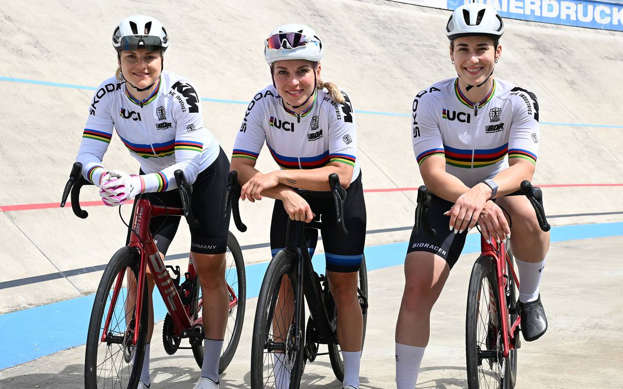 - im Teamsprint auf dem Bahnradoval zählt für Emma Hinze, Lea Sophie Friedrich und Pauline Grabosch ebenfalls nur Gold.