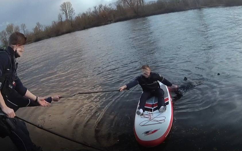 Als erstes traf eine Polizeistreife ein. Ein 26-jähriger Beamter schnappte sich ein Stand-Up-Paddling-Board am Ufer, setzte sich drauf und konnte damit rund 50 Meter weit zu dem Mann in der Ruhr paddeln. Er rettete den 81-Jährigen vorm Ertrinken und zog ihn mit Hilfe des Boards zum Ufer. Dort halfen die mittlerweile eingetroffenen Kräfte von DLRG und Feuerwehr. Der Senior kam ins Krankenhaus. Die Polizei untersucht den Fall.
