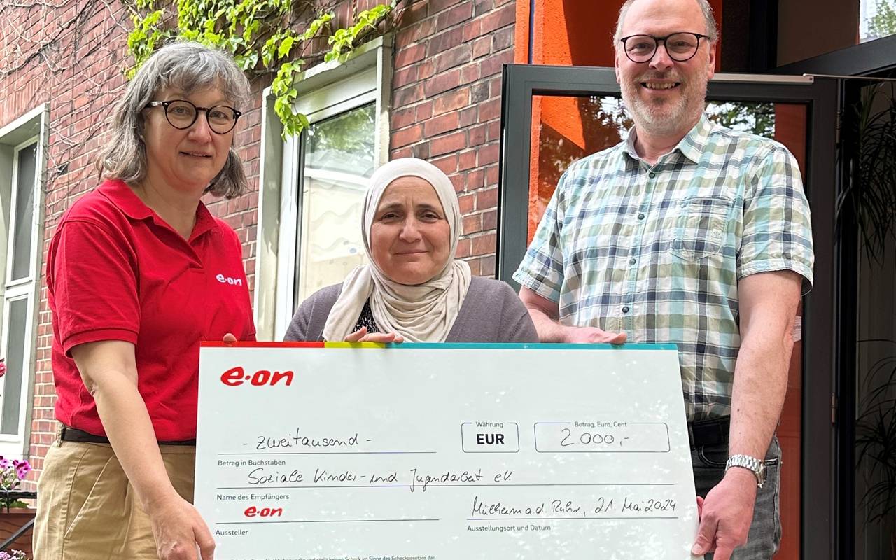 Der Energieanbieter E.ON hat eine Spende über 2.000 Euro an den Verein "Soziale Kinder- und Jugendarbeit e.V." übergeben. Die Summe wurde auf dem Stadtfest "Mülheim mittendrin" erradelt.
