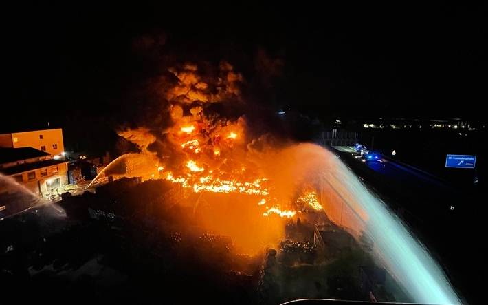 Reifenlager stand in Flammen