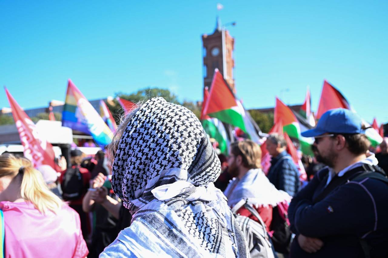 Berlin (dpa) - Rund zwei Jahre nach Beginn des Gaza-Kriegs haben sich in Berlin so viele Menschen wie noch nie in Deutschland an Protesten gegen das israelische Vorgehen beteiligt. Die Veranstalter sprachen von mehr als 100.000 Menschen – die Polizei schätzte die Zahl auf etwa 60.000. Beides übertrifft die bis dahin größte deutsche Gaza-Demonstration mit 50.000 Menschen im Sommer in Berlin.