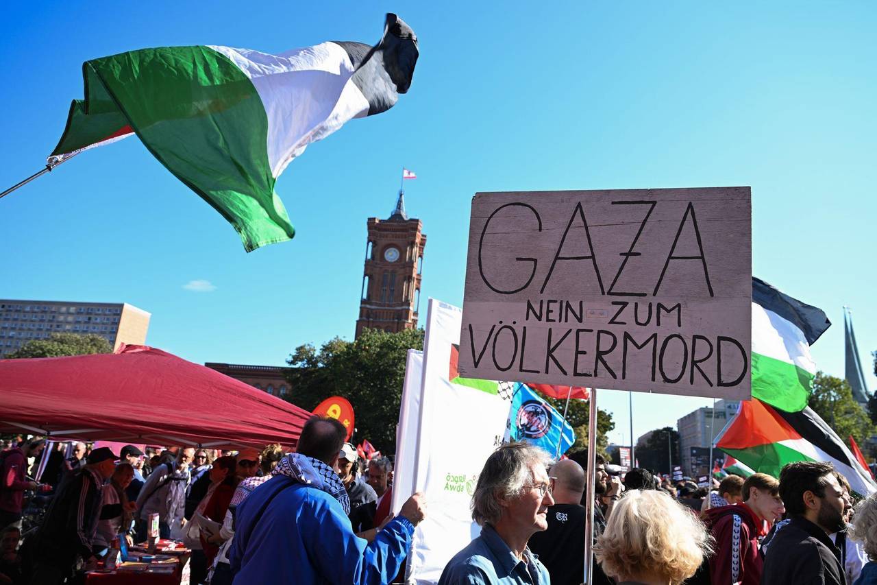 Am Nachmittag waren Zehntausende vom Roten Rathaus in Berlin-Mitte zu einer Kundgebung an der Siegessäule im Tiergarten gezogen. Die Demonstranten forderten unter anderem den sofortigen Stopp deutscher Waffenexporte an Israel, Zugang für humanitäre Hilfe nach Gaza sowie EU-Sanktionen gegen Israel.