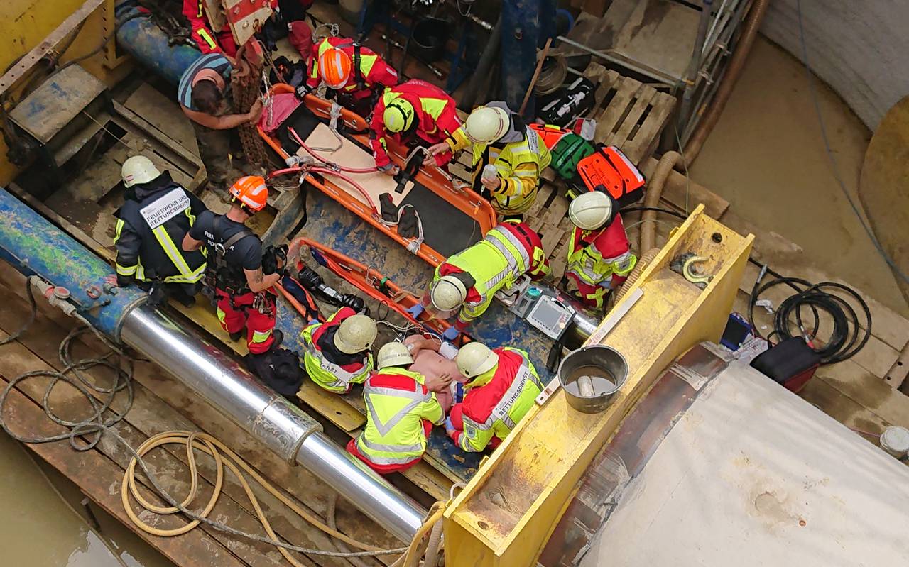 Seine Kollegen konnten ihn mehrere hundert Meter durch das Rohr zurück in die Baugrube transportieren. Dort haben ihn die Feuerwehrleute mit Hilfe eines Krans und einem daran befestigten Korb bergen können. Der Mann kam ins Krankenhaus.