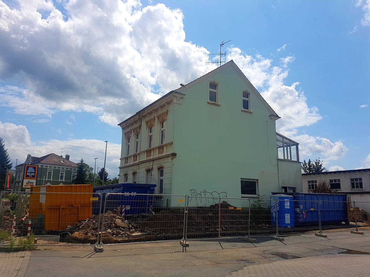 Der REWE-Markt an der Heidestraße in Styrum will sich vergrößern. Dafür wird in den nächsten Tagen das an den Parkplatz grenzende leerstehende Haus abgerissen. Es stehen schon Bauzäune rundherum und seit einigen Tagen laufen vorbereitende Arbeiten für den Abriss.