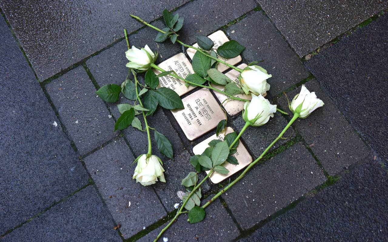 An dieser Stelle liegen seit 15 Jahren kleine Gedenksteine für die Familie Jägers. Seit fünf Jahren gibt es hier auch zwei Stolpersteine für Gustav und Julia Kaufmann. Die Mülheim-Uhlenhorster Rotarier bringen jedes Jahr zum Holocaust-Gedenktag alle 175 Stolpersteine im Stadtgebiet wieder zum Glänzen. Sie erinnern an Menschen, die unter den Nazis gelitten haben. Heute wird der Rathausturm außerdem mit Trauerbeflaggung versehen. Am Montag (29.1.) gibt es auf dem Jüdischen Friedhof an der Gracht eine Gedenkstunde mit Kranzniederlegung.
