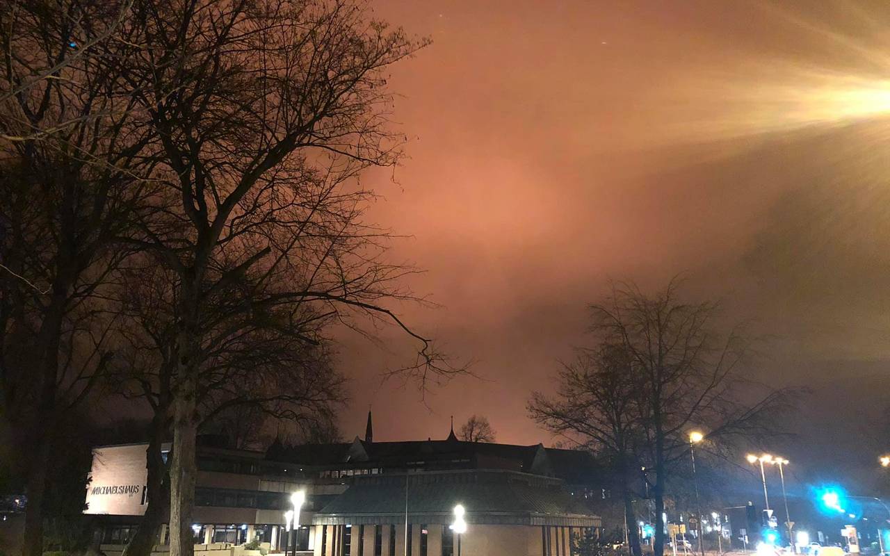 Wegen eines riesigen Feuerscheins am Himmel haben am Abend viele besorgte Menschen die Mülheimer Feuerwehr angerufen. Das sagte uns ein Sprecher. Grund für den rot leuchtenden Himmel war aber kein Großbrand, sondern die Gasfackel einer Raffinerie in Gelsenkirchen.