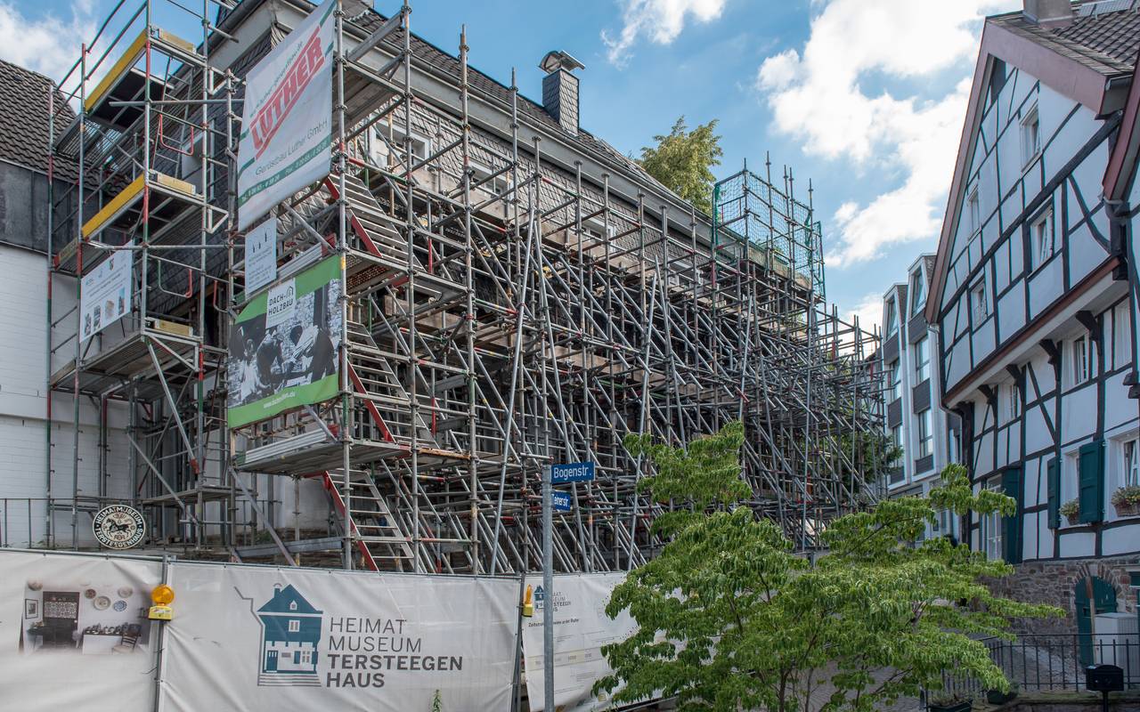 Im ersten Bauabschnitt in diesem Jahr dreht sich alles um den Hausschwamm in den Holzbalken. Die Tragkonstruktion wird ausgetauscht und Bauteile instand gesetzt. Es geht um die Erhaltung der Substanz des Gebäudes, heißt es vom Immobilienservice. Wenn alles klappt, kann schon im Sommer das Außengerüst verschwinden, was das marode Tersteegenhaus aktuell noch stützt. Bund und Land haben für den ersten Bauabschnitt 750.000 Euro aus einem Denkmal-Förderprogramm genehmigt. Die Arbeiten sollen bis Ende des Jahres erledigt sein.