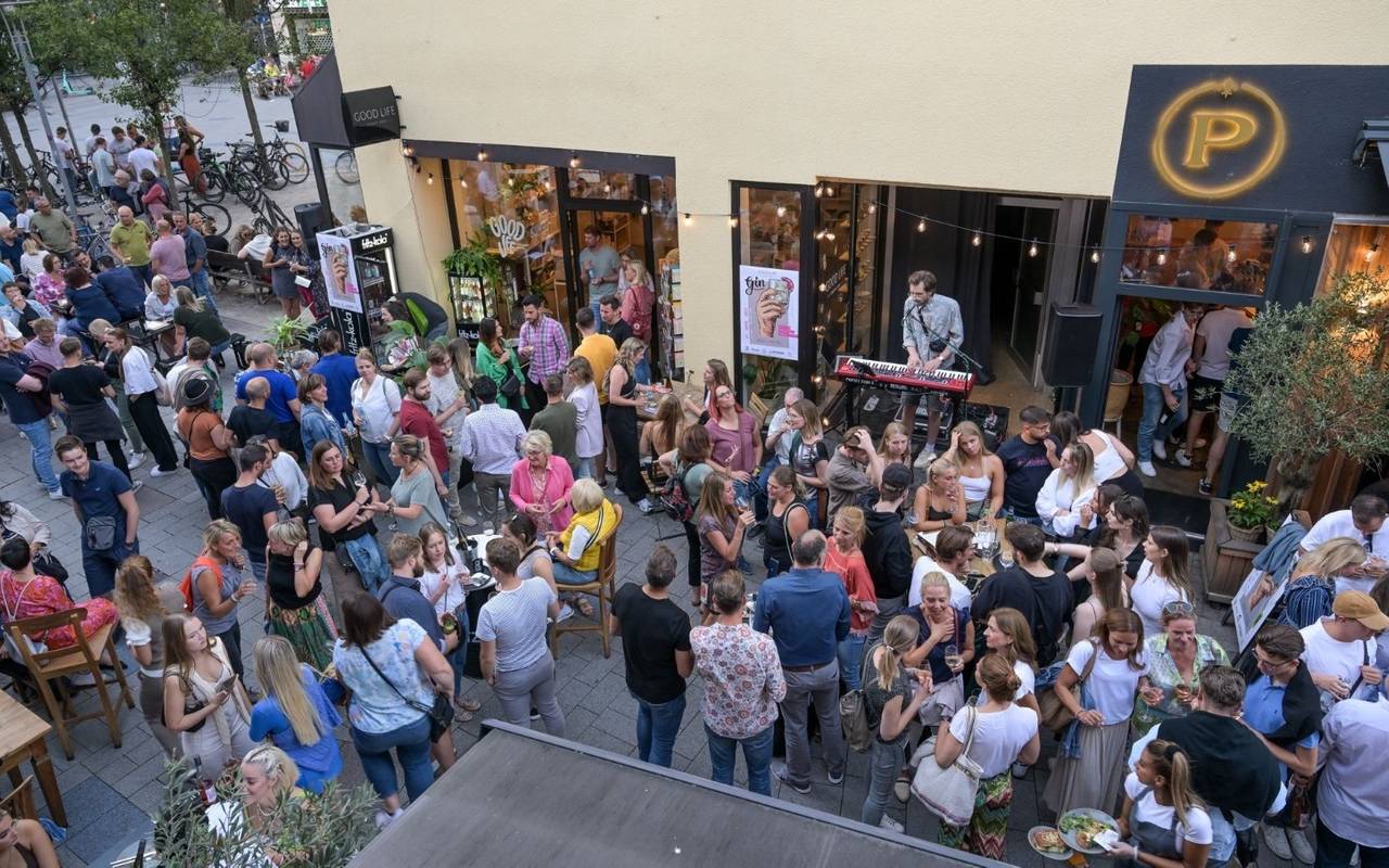 Im Wallviertel in der Innenstadt wir heute wieder gefeiert. Die Veranstaltungsreihe "Schön hier" läuft auch bei dem aktuell sehr nassen Wetter, sagen die Organisatoren. Aktionen, die draußen geplant waren, werden so weit wie möglich nach Innen ins trockene verlegt, heißt es.