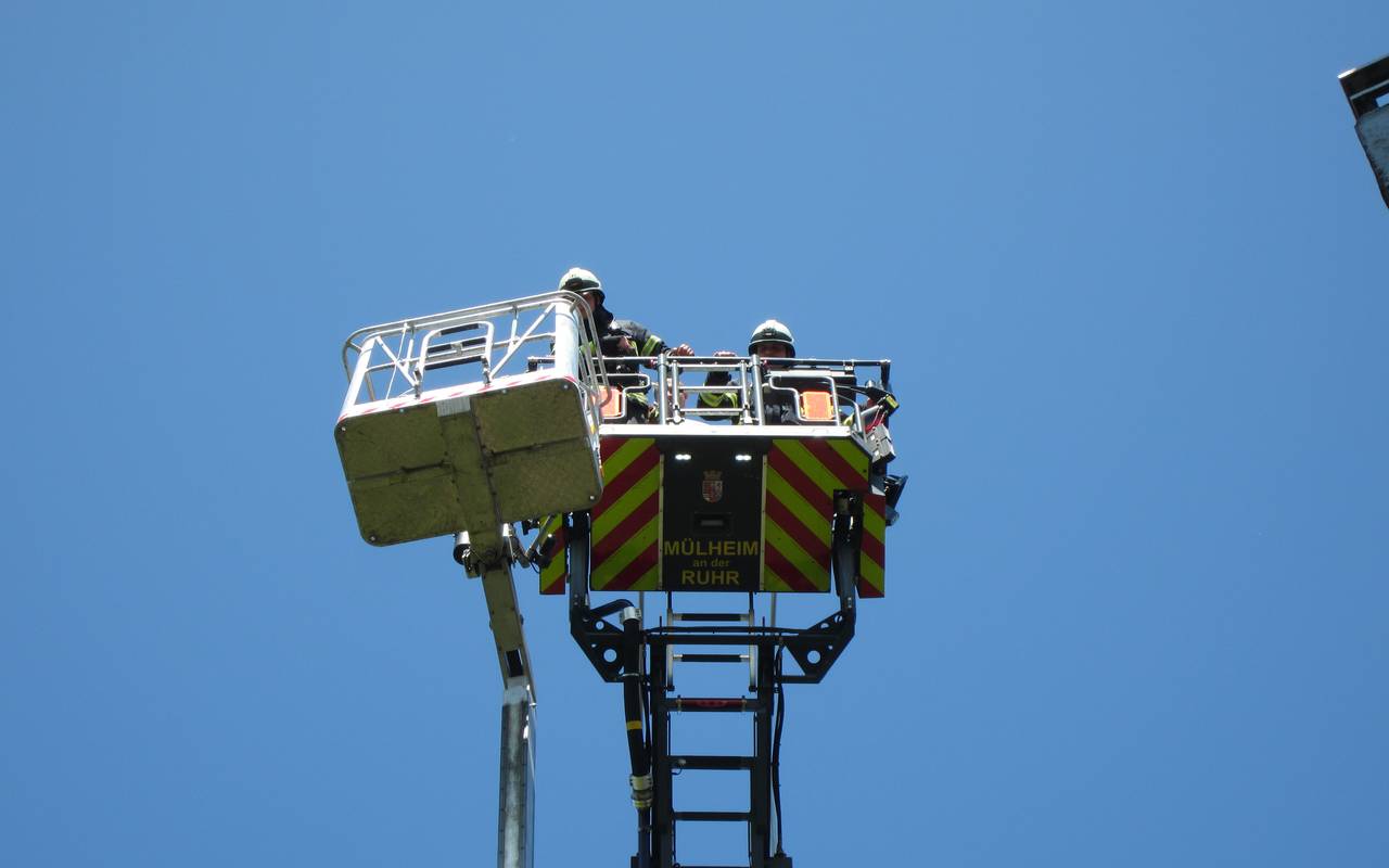 Heute Mittag musste die Feuerwehr in Styrum einen Mann aus 20 Metern Höhe retten. Er befand sich im Arbeitskorb eines Hubsteigers.