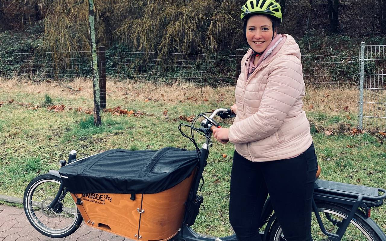 Melanie aus Datteln fährt gerne mit ihrem Lastenrad - mit Helm und achtet somit auf Sicherheit.
