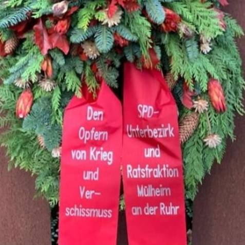 Sie erinnert zusammen mit dem Mülheimer Kreisverband "Volksbund Deutsche Kriegsgräberfürsorge" jedes Jahr an die Opfer von Krieg und Gewaltherrschaft. Dafür treffen sich heute nur Oberbürgermeister Buchholz und Bürgermeister Püll in seiner Funktion als Vorsitzender des Kreisverbands auf dem Alten Friedhof. Dort werden sie am Mahnmal einen Kranz niederlegen.