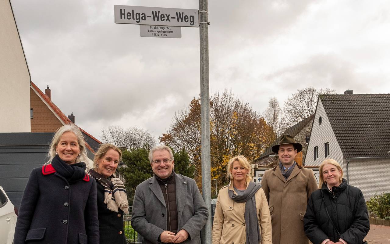 Benannt ist er nach der ehemaligen Mülheimer Kommunalpolitikerin und Bundestagsabgeordneten. Das Straßenschild wurde jetzt gemeinsam mit den beiden Töchtern von Helga Wex enthüllt. Die Namensgebung hatte die zuständige Bezirksvertretung I bereits im Frühjahr 2018 beschlossen. Wex habe sich intensiv in der Frauen-, Familien- und Bildungspolitik engagiert. Insbesondere habe sie auf die Gleichberechtigung der Frau in Ehe und Beruf hingewiesen. Die Politikerin starb 1986 im Alter von 61 Jahren in Mülheim.