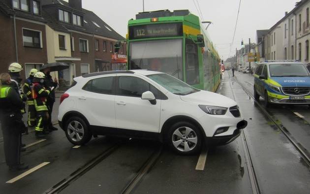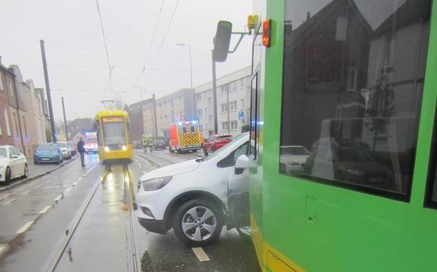 Aus noch ungeklärter Ursache waren ein Auto und eine Straßenbahn zusammengekracht. Als die Einsatzkräfte am Unfallort ankamen, trafen sie zwei verletzte Personen an. Diese kamen ins Krankenhaus. Eine weitere Person war schon zur Behandlung in eine nahegelegene Hausarztpraxis gegangen. Die Polizei ermittelt wegen der Unfallursache.