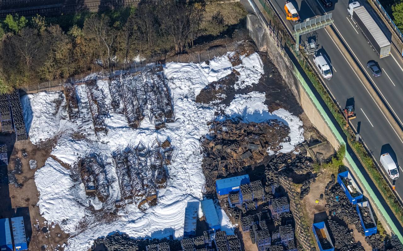 Nach dem Großbrand an der A40 bei Bochum starten heute die Arbeiten an der zerstörten Stützwand. Der Beton war durch das Feuer im Reifenlager brüchig geworden.