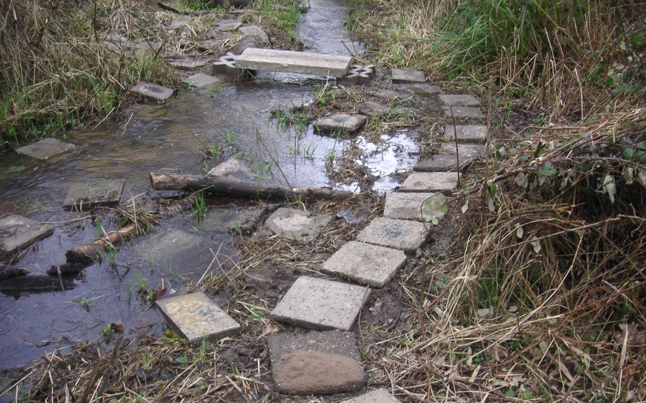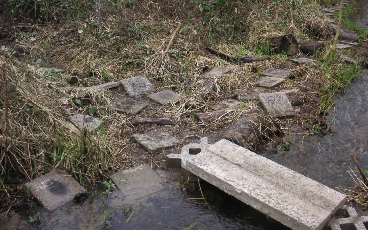 Unbekannte verlegen Gehwegplatten am Bühlsbach