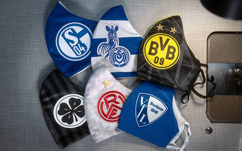 Sechs Fußballclubs aus dem Revier haben sich in der Corona-Krise für eine besondere Aktion zusammengetan: Sie versteigern Schutzmasken im Vereins-Look. Mit dabei sind Rot-Weiß Oberhausen, MSV Duisburg, Rot-Weiss Essen, Borussia Dortmund, Schalke 04 und der VfL Bochum.