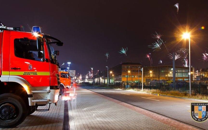 Die Feuerwehr wurde rund 140 Mal alarmiert, etwa 30 Mal ging es um Brandeinsätze. Dazu zählten brennende Mülltonnen, Feuer an Fahrzeugen oder auch ein brennender Weihnachtsbaum in Styrum. Alles konnte laut Bericht schnell gelöscht werden. Der Rettungsdienst rückte knapp 60 Mal aus. Die Retter mussten sich um Betrunkene kümmern sowie kleinere Verbrennungen oder Verletzungen durch Glas. Die Besatzung eines Rettungswagens der Johanniter wurde von einem vermeintlichen Patienten bespuckt. Der Mann wurde von der Polizei mitgenommen. Die Polizei kam in der Neujahrsnacht auf fast 240 Einsätze. Dabei ging es um Ruhestörungen oder Schlägereien. Nebenan in Essen wurden Feuerwehrleute gezielt angegriffen und mit Böllern beworfen. Ein Mann schwebt in Lebensgefahr, nachdem er versucht hatte, mehrere Raketen gleichzeitig anzuzünden. Er erlitt schwerste Verbrennungen. Auch seine Tochter wurde bei dem Unglück schwer verletzt.