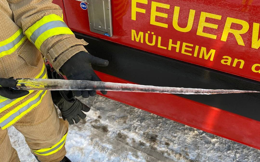 Gestern zum Beispiel drohten Schneebretter vom Dach der Stadthalle zu stürzen. Diese musste die Feuerwehr per Drehleiter entfernen. Heute gab es mehrere Einsätze zum Beispiel in Broich und der Altstadt, weil dort bis zu 1 Meter lange Eiszapfen von Dachrinnen hingen und zu einer möglichen Gefahr für Fußgänger wurden. Die Feuerwehr weist darauf hin, dass Mülheimer nicht versuchen solten, die Schneebretter oder Eiszapfen an ihren Dächern selbst zu beseitigen, wenn sie sich dadurch in Gefahr bringen. Das sollte lieber von einer Fachfirma, also zum Beispiel einem Dachdecker gemacht werden.