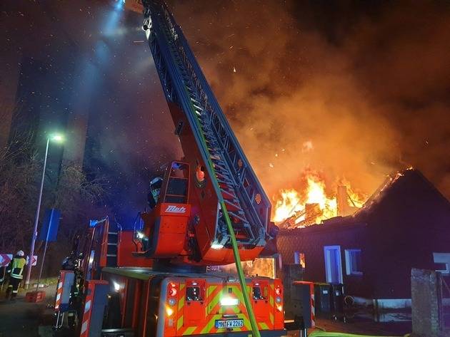 Bei einem Feuer in Heißen sind am späten Abend zwei Menschen schwerverletzt worden. Als die Feuerwehrleute an dem Einfamilienhaus an der Velauer Straße ankamen, brannte schon der komplette Dachstuhl.